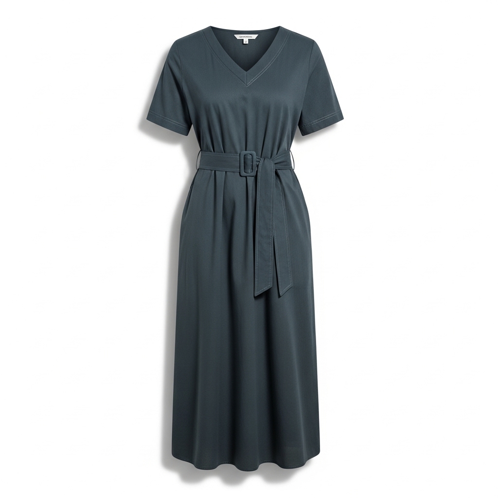 Shop NowGlameca Belted Casual Midi Dress with Pockets | V-Neck Short Sleeve Dress