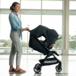 When traveling with a toddler, convenience is key. The Nuna TRVL stroller is your ultimate companion, designed to make outings to the park, shopping trips, or weekend adventures a breeze. This ultra-lightweight stroller, weighing just 13.6 lbs.*, features all-wheel suspension for a smooth ride, and it folds itself with just a touch of a button, ensuring effortless portability.